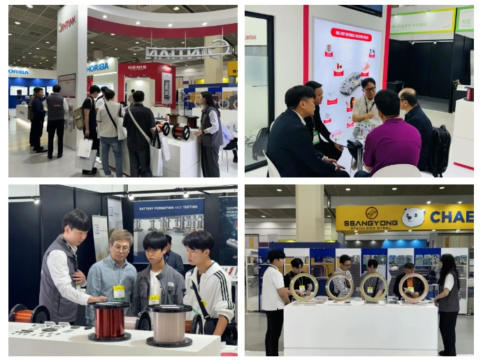 韓國國際新能源汽車展是韓國最專業(yè)的電動(dòng)車展會(huì)之一。本屆展會(huì),金田銅業(yè)攜高精密銅合金帶材、高導(dǎo)精密銅排、高精度合金棒線、高性能電磁線、稀土永磁材料等系列產(chǎn)品參展,為新能源汽車電驅(qū)、電池、電控及線束連接等核心領(lǐng)域提供一站式材料應(yīng)用,以及低碳再生銅材、磁材解決方案。展會(huì)期間,眾多韓國汽車行業(yè)知名客戶到訪,并與現(xiàn)場產(chǎn)品經(jīng)理暢談新能源汽車行業(yè)動(dòng)態(tài),交流材料技術(shù)相關(guān)話題。