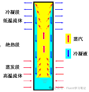 隨后,氣體沿著管內移動到冷卻端(稱為冷凝段),在此過程中冷凝成液體并釋放熱量。液態(tài)工作液通過毛細作用或重力返回到蒸發(fā)段,完成一個完整的循環(huán)。