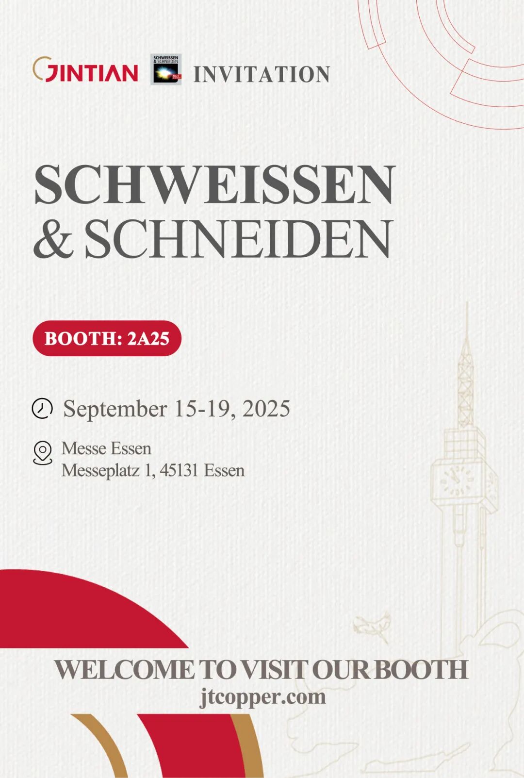 2025年德國埃森焊接切割展覽會(SCHWEISSEN & SCHNEIDEN),關注數(shù)字化和利用協(xié)作機器人實現(xiàn)交互自動化兩大主題,展出聚焦焊接、切割、熱處理、生產及填充材料、機械設備等領域。誠邀您蒞臨金田銅業(yè)展臺,交流高精密合金棒線和一站式銅材解決方案,期待您到訪!